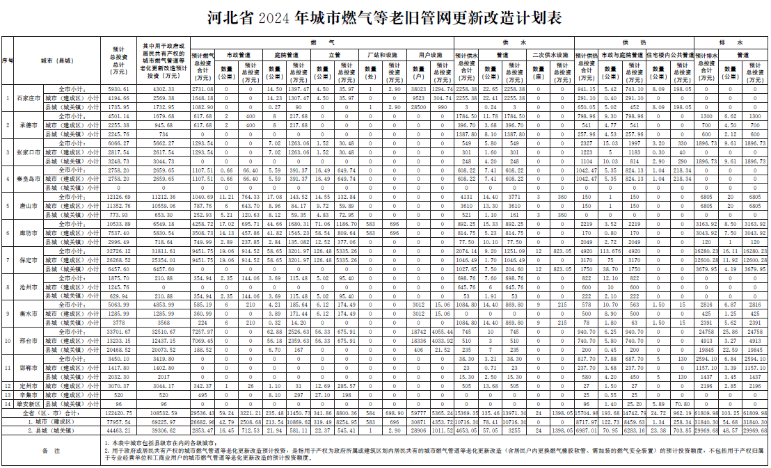 河北省2023-2025年城市燃气等老旧管网更新改造计划表